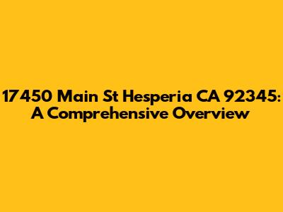 Hey guys! Let's dive deep into everything you need to know about 17450 Main St, Hesperia, CA 92345. Whether you're looking to buy, sell, or just curious about this location, this guide has got you covered. We'll explore the neighborhood, nearby amenities, and all the juicy details that make this spot unique. So, buckle up and let's get started!