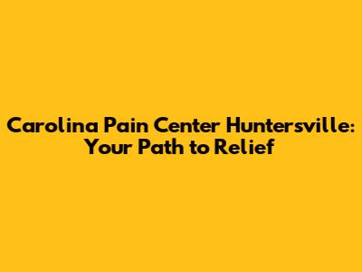 Carolina Pain Center Huntersville: Your Path To Relief