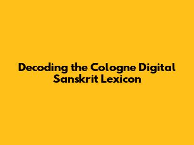 What Exactly is the Cologne Digital Sanskrit Lexicon?
