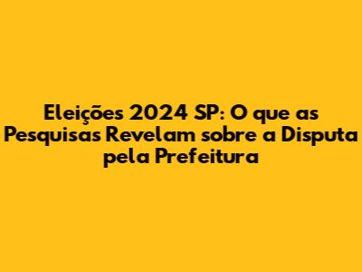 Eleições 2024 SP: Pesquisas E Cenários Para Prefeito