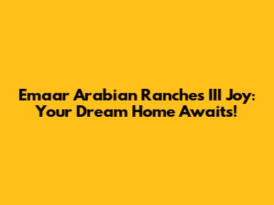 Hey guys! Are you on the hunt for a dream home that combines luxury, comfort, and a vibrant community? Well, look no further because Emaar's Arabian Ranches III Joy is here to steal your heart! This amazing residential development offers a unique blend of modern living and serene landscapes, making it the perfect place to create lasting memories with your loved ones. Let's dive into what makes Arabian Ranches III Joy such a fantastic choice for your next home.