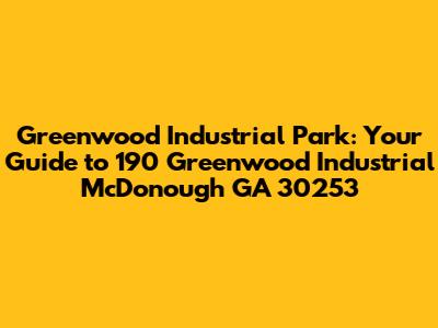 Hey there, property enthusiasts! Let's dive deep into the world of industrial real estate, specifically focusing on 190 Greenwood Industrial McDonough GA 30253. This address is more than just a string of numbers; it's a gateway to understanding a bustling industrial park, its potential, and what makes it a prime location. Greenwood Industrial Park is a significant player in the McDonough, Georgia, area, and we're here to break down everything you need to know. Whether you're a seasoned investor, a business owner looking for space, or just curious about commercial real estate, this guide is for you. We'll cover property details, nearby businesses, market analysis, and so much more. Get ready to explore the ins and outs of this dynamic industrial hub! Let's get started, shall we?