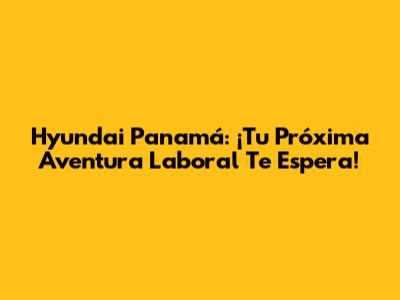 Hyundai Panamá: ¡Tu Próxima Aventura Laboral Te Espera!