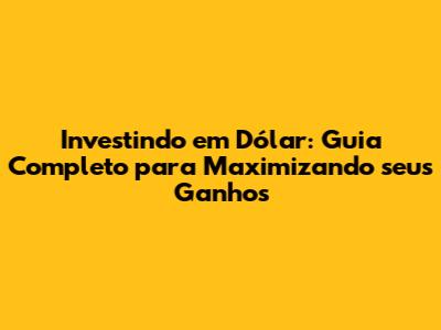 Investindo Em Dólar: Guia Completo Para Maximizando Seus Ganhos