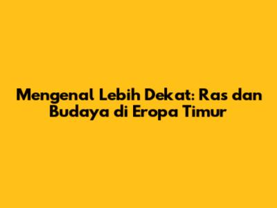 Mengenal Lebih Dekat: Ras Dan Budaya Di Eropa Timur