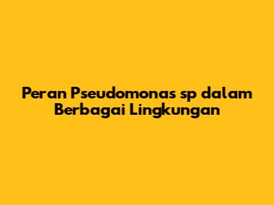 Peran Pseudomonas Sp Dalam Berbagai Lingkungan