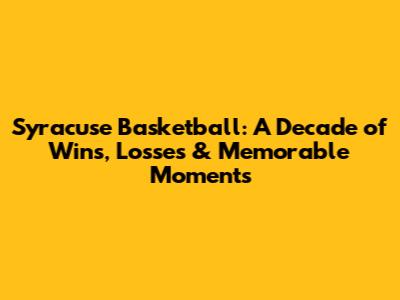 Syracuse Basketball: A Decade Of Wins, Losses & Memorable Moments